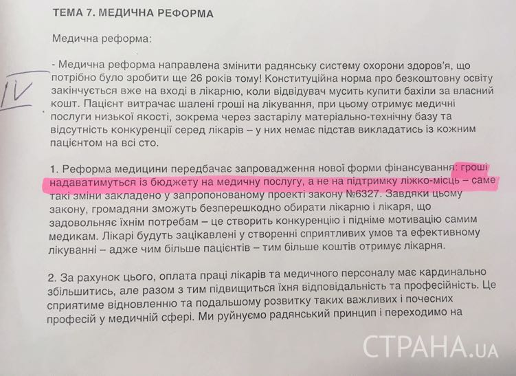 Много внимания в прошлом месяце технологи Банковой потратили на комментирование болезненной для реформаторов темы – "медицинская реформа". Авторы темников пафосно описывают, в чем особенность реформы и описывают последствия. "Оплата работы докторов и медицинского персонала должна кардинально увеличится, но вместе с тем, возрастет уровень их ответственности и профессионализм. Благодаря реформе граждане начнут уплачивать значительно меньше, чем этого требует действующая система", - пишут в документах, вот только не уточняют как.