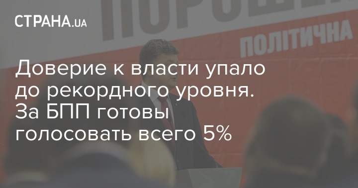 В Украине стремительно упало доверие к действующей власти, в частности, к президенту Петру Порошенко. Рейтинг поддержки Порошенко, по данным этого исследования, продолжает снижаться и составил исторический минимум – 14%. Исторический максимум поддержки действий Порошенко был в сентябре 2014 года, спустя три месяца после его избрания на пост главы государства – 55%. При этом тогда всего 35% не доверяли Порошенко и не поддерживали его действия. На сегодня количество тех, кто не одобряет деятельность Порошенко на посту президента, составляет 77%.