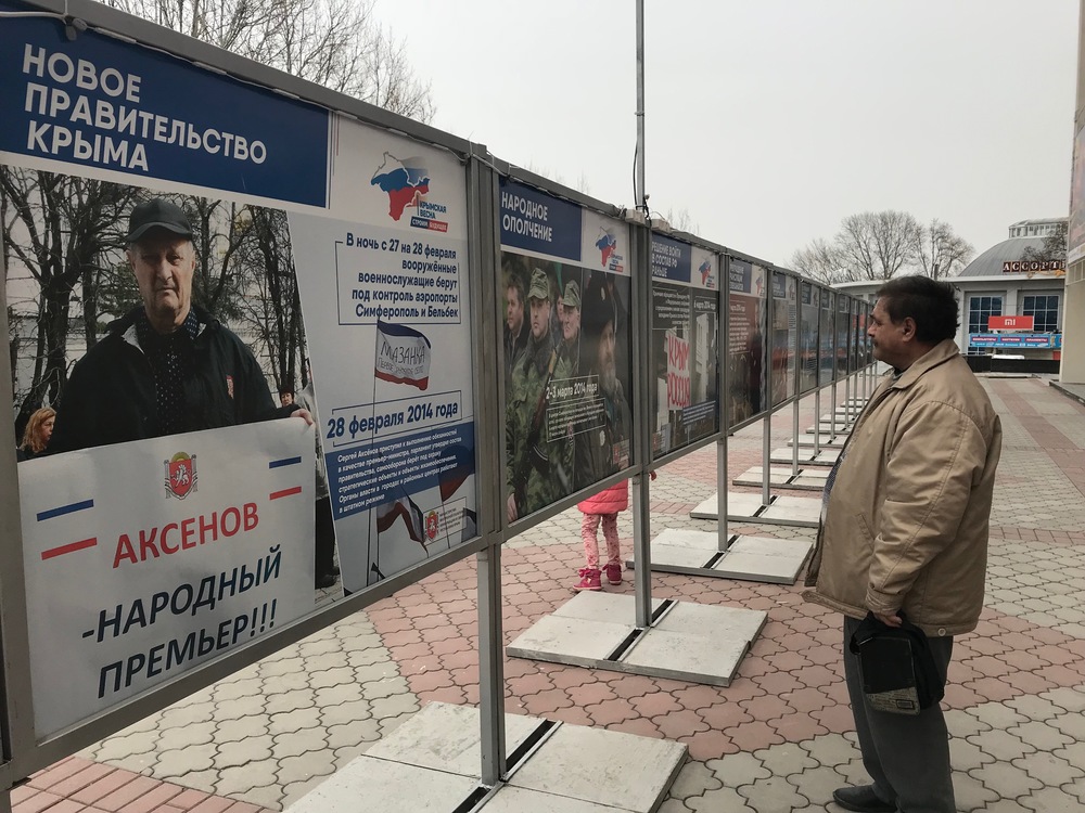 – Я тоже там был. А это Константинов (глава "парламента" аннексированного Крыма - Прим.Ред.), – говорит Сергей, показывая на стенд.
