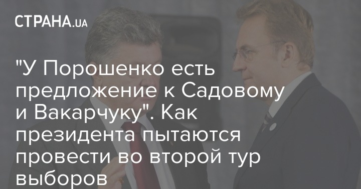 Как рассказали "Стране" источники, близкие к Администрации президента, в последние недели команда Порошенко ведет переговоры с Андреем Садовым и Святославом Вакарчуком о заключении некоего "понятийного" соглашения, которое бы предусматривало план действий как на время до выборов, так и после них.
