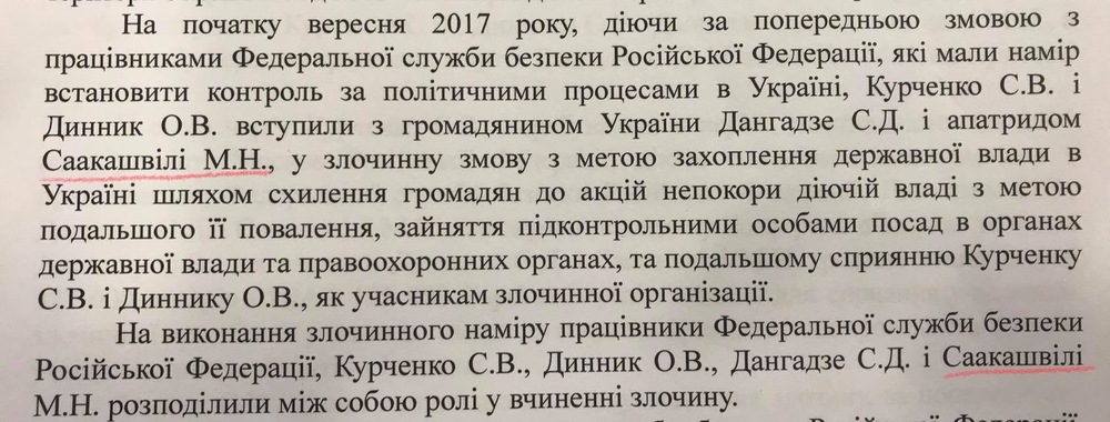 Где среди прочего заявляется пять фигурантов разномастной "преступной ОПГ", якобы затеявшей свержение власти в Украине. Это сам Курченко, банкир Дынник, Дангадзе, Саакашвили и ФСБ.