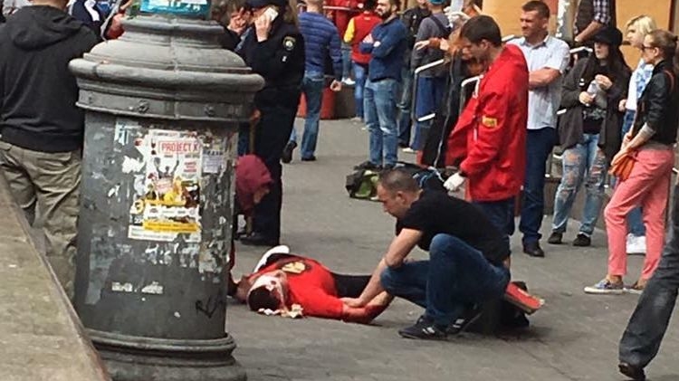 Потерпевшему пытались оказывать первую помощь полицейские, перебинтовали ему рану на голове, сейчас он в тяжелом состоянии в реанимационном отделении 17-больницы. Врачи борются за его жизнь. Это 30-летний уроженец Кировоградской области. Что он делал в Киеве сейчас выясняет следствие.