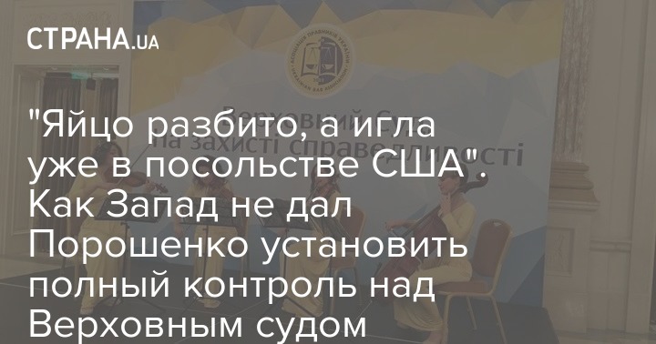 "Порошенко разбил яйцо, где находится секрет его смерти. Осталось сломать иглу, она - в посольстве США. Верховный суд оказался не президентский вообще", - говорит на правах анонимности один из представителей юридического сообщества.