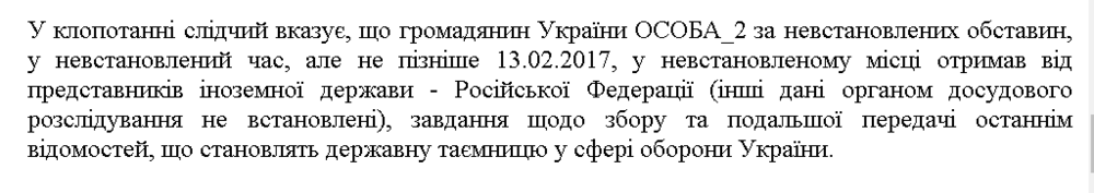 При этом, как минимум, первый документ (техзадание по бронестойким металлическим композитам), по признанию самого следствия, был ненастоящим. Его изготовили в самом СБУ, что подтверждено Протоколом изготовления и осмотра ненастоящего (имитационного) средства: