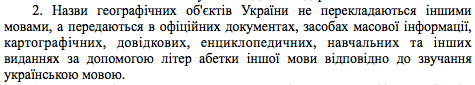 7. Правописание – использование имен собственных разрешается только на украинском языке. Например, высший законодательный орган Украины – Верховную Раду – нельзя называть Верховным советом. Примечательно, что украинские географические названия также должны транслитерироваться в соответствии со звучанием на мове. Буквально стоит понимать эту норму так: надо будет писать Кыив, Харкив и Кропывныцькый. Нарушителям – штраф.