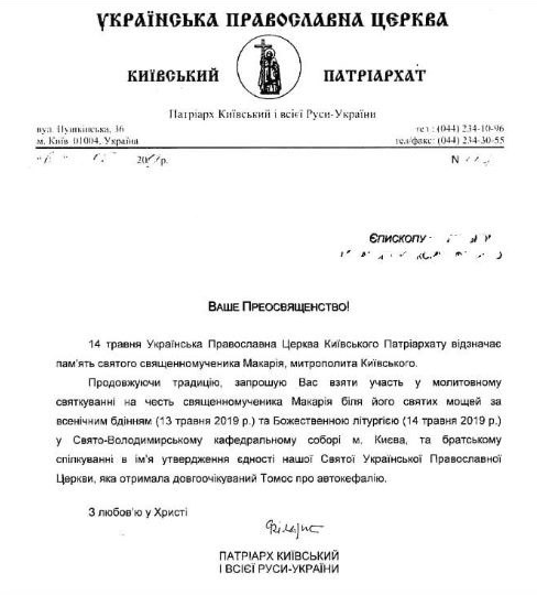 Приглашение патриарха Киевского и всея Руси-Украины Филарета архиереям созданной поместной украинской церкви на "торжественное молитвенное общение" 14 мая, день, когда чтят память священномученика Макария, спровоцировало межконфессийный скандал между Киевским патриархатом и ПЦУ.