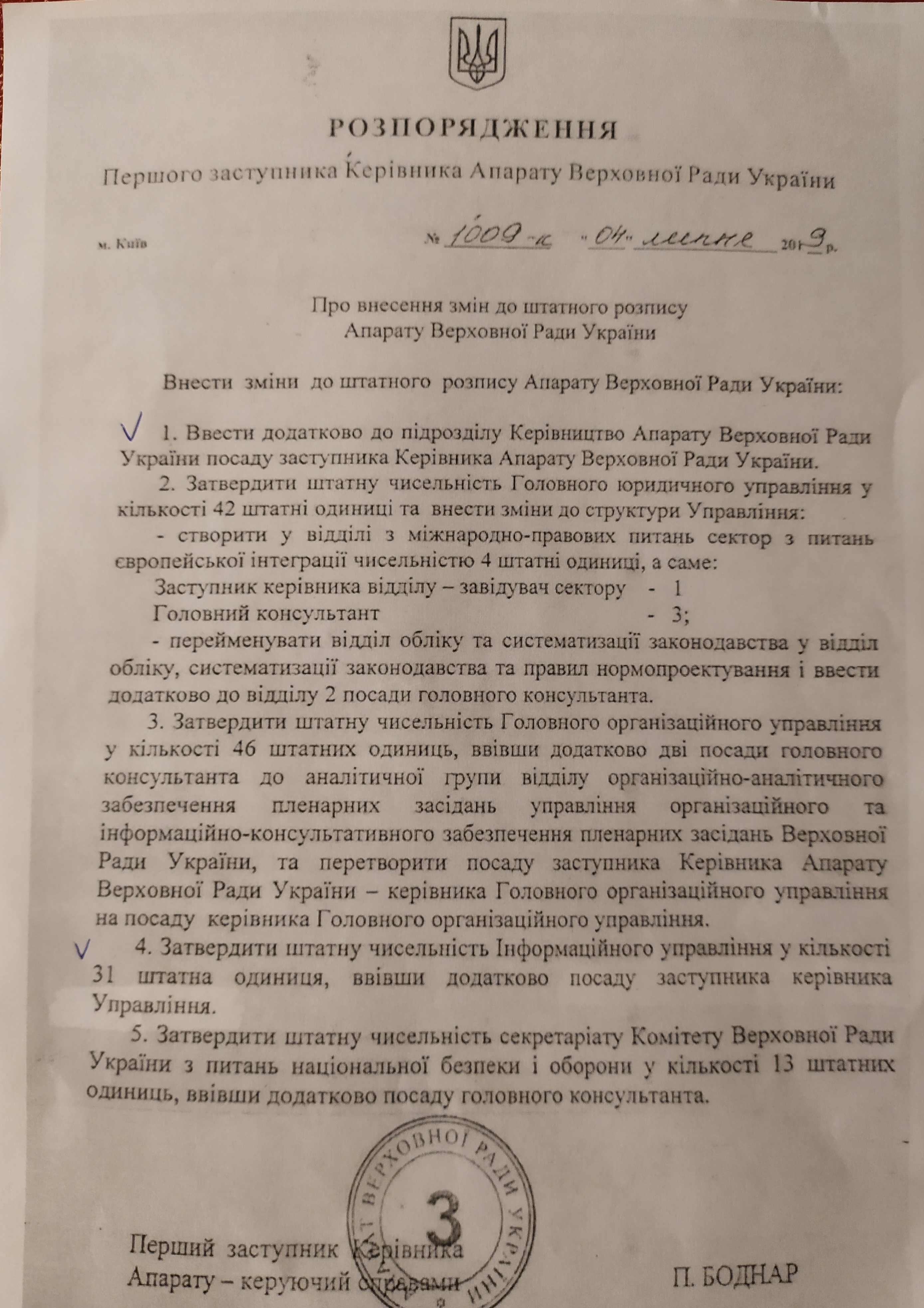 Кроме того, опыта работы помощником нардепа или в патронатной службе спикера определенно недостаточно, чтобы стать замруководителя парламентского аппарата, который относится к госдолжностям категории “Б” и не подпадает под норму об увольнении вместе с отставкой руководителя.