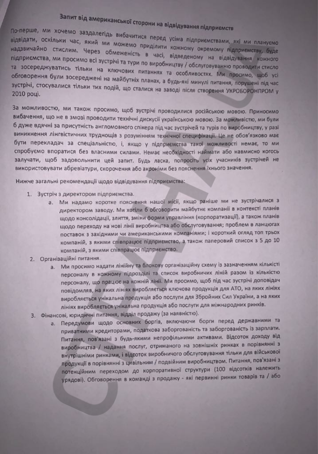 О визите американцев "Стране" стало известно из внутреннего распоряжения "Укроборонпрома", подписанного гендиректором концерна Айварасом Абромавичусом, копией которого располагает редакция.