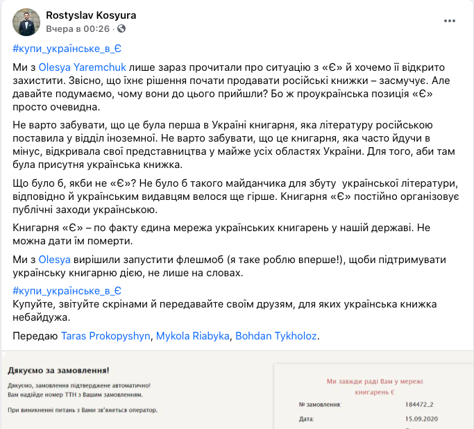 Теперь то, за то “Книгарня Є” травила конкурентов - за торговлю русской книгой, - она делает сама.
