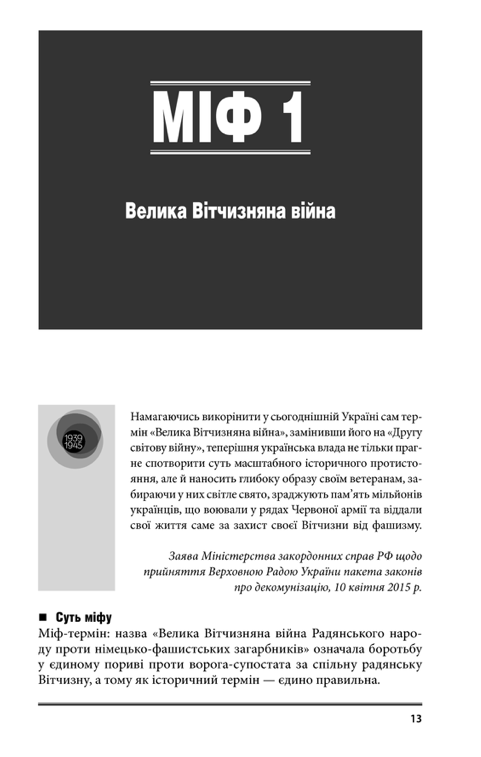 “Правда ли, что пакт Молотова-Риббентропа был вынужденным шагом для СССР? Всегда Советский Союз был непримиримым противником нацистов? Правда ли, что украинские националисты массово истребляли евреев во время войны, особенно во Львове и Бабьем Яре? Сталин согласовывал военные действия с Гитлером? Бандера был агентом спецслужб нацистов? Крымские татары массово дезертировали в начале войны?”, - интригует аннотация к книге.