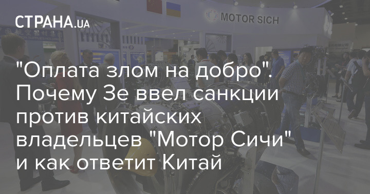 Война за стратегическое украинское предприятие "Мотор Сич" выходит на новый этап. Его китайские покупатели попали под санкции СНБО Украины, которые в пятницу ввел в действие своим указом президент Владимир Зеленский.