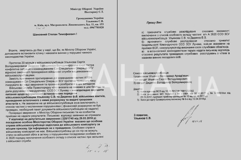 Обращение Сергея Ульянова к министру обороны Степану Полтораку. Фото: Страна