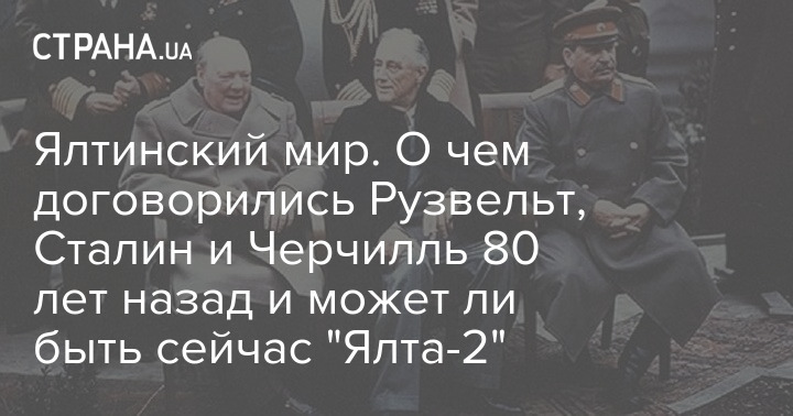 Вчера исполнилось ровно 80 лет со дня знаменитой встречи в Ялте трех лидеров антигитлеровской коалиции – Франклина Рузвельта, Иосифа Сталина и Уинстона Черчилля. На ней были определены очертания послевоенного мира и новой системы международных отношений (в частности – решение создать ООН с правом вето для "отцов-основателей" было принято именно в Ялте), которая, несмотря на все глобальные потрясения, действует до сих пор. Хотя конкретно сейчас ее "штормит" как никогда раньше.