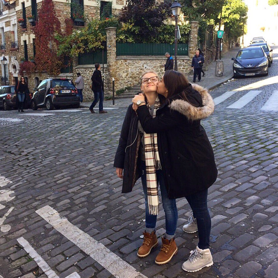 Кристина Гройсман целует свою подружку на улицах Лондона, фото: vk.com