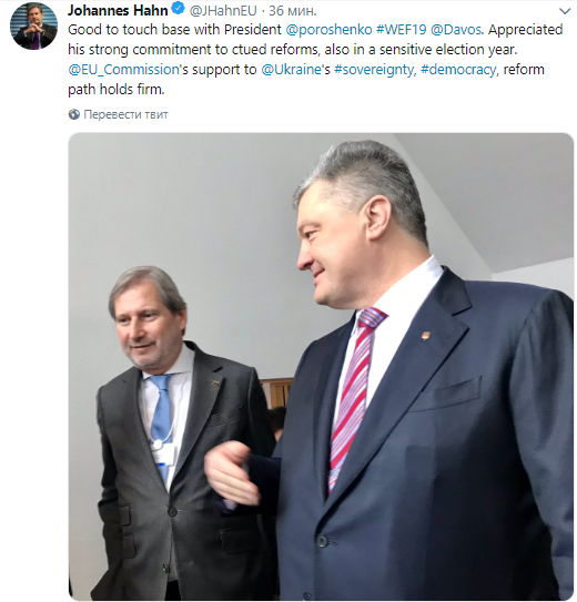 Йоханнес Ханн и Петр Порошенко в Давосе, фото: twitter.com