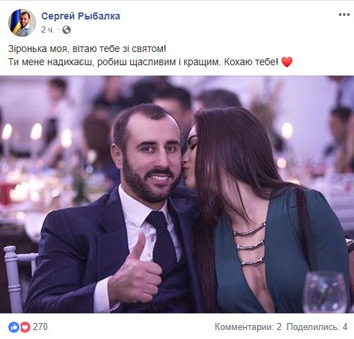 Нардеп Сергей Рыбалка, соратник Ляшко - не упустил возможности поздравить свою жену Анастасию Байбородину с Днем любви.