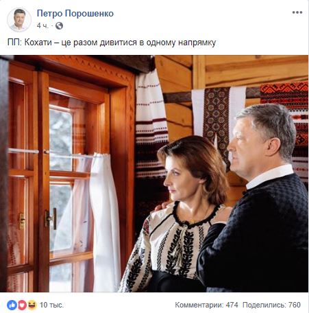 Президент Петр Порошенко в праздник всех влюбленных показал очередное фото с женой Мариной в какой-то аутентичной украинской хате.
