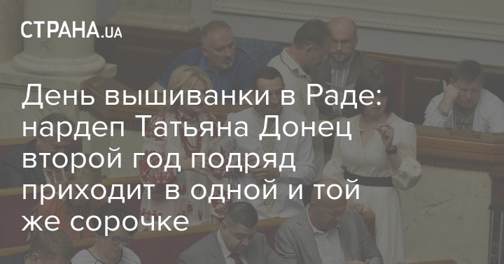 Татьяна Донец из "Народного фронта" в честь праздника пришла в белой рубахе с мелкой вышивкой. В той же, что и в прошлом году. По информации "Страны", это вышиванка от дизайнера Роксоланы Богуцкой, которая пошила ее специально для Донец еще в 2012 году, когда та стала депутатом. Отметим, что Денис Дзензерский, муж Татьяны оделся обычно: голубая рубашка и костюм.