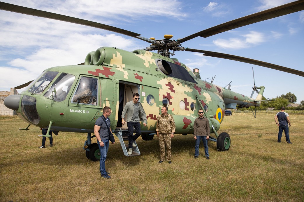Зеленский выдержал дресс-код и на официальных мероприятиях был в рубашке, галстуке и костюме, не смотря на жаркую погоду. А вот в Станицу Луганскую он прилетел ближе к обеду на вертолете. На нем были джинсы, футболка и легкая рубаха оливкового цвета. Из аксессуаров - очки от солнца и браслеты на руках.