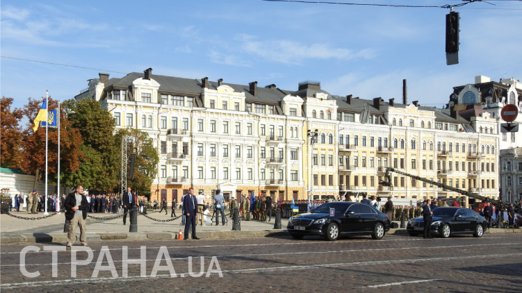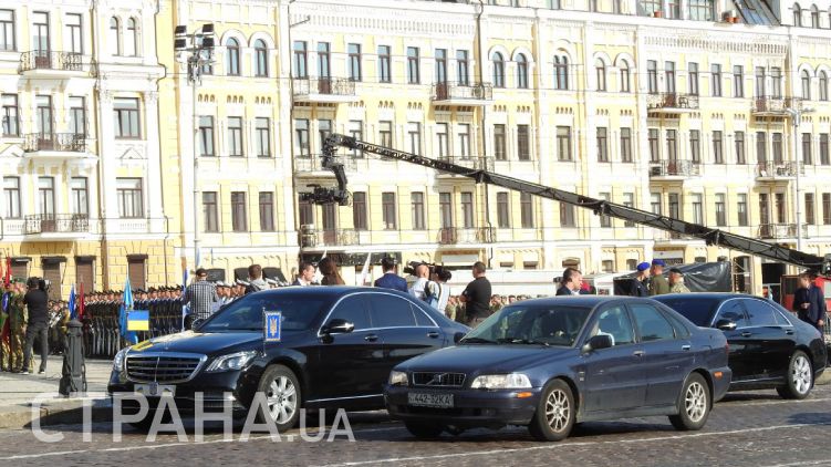 Президент Зеленский уезжает с Софийской площади, после поднятия флага, видео: "Страна"