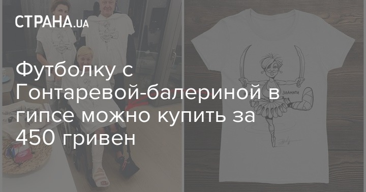 В подарок гости привезли бывшей руководительнице НБУ "слова поддержки от многих украинцев" и дизайнерские футболки Юрия Журавля. На одежде изображена сама Гонтарева в образе балерины, с забинтованной ногой и саблями.