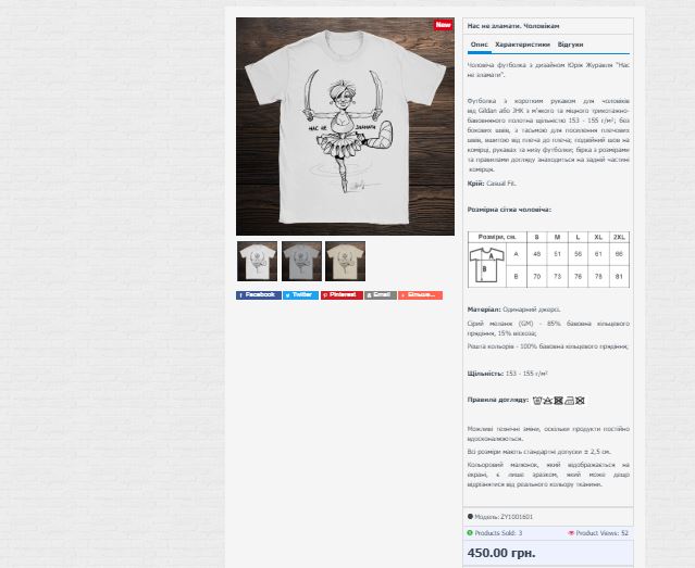 Также можно приобрести вещи с принтами рисунков Юрия Журавля: футболки, свитшоты, детские костюмы. Петра Порошенко с ирокезом на футболке можно приобрести за 350 гривен, а вот Гонтарева-балерина обойдется на 100 гривен дороже.