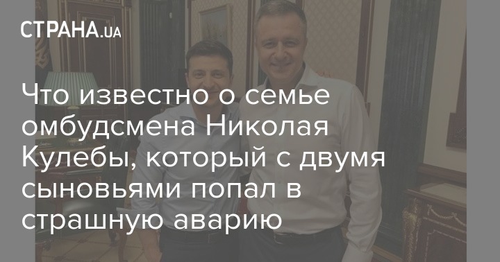 Вчера, 24 ноября, в серьезную аварию попал 47-летний Николай Кулеба, уполномоченный президента по правам ребенка. ДТП произошло в поселке Чабаны под Киевом. Николай был за рулем седана Toyota, в салоне ехало двое его сыновей: Тимофей и Елисей.
