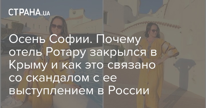 Одновременно с тем, что Ротару поедет на концерты в Москву в прессе появилась информация, что ее гостиница Villa Sofia в Ялте (Крым) - прекратила свою роботу. Последнее время управляла отелем невестка звезды - Светлана Евдокименко.