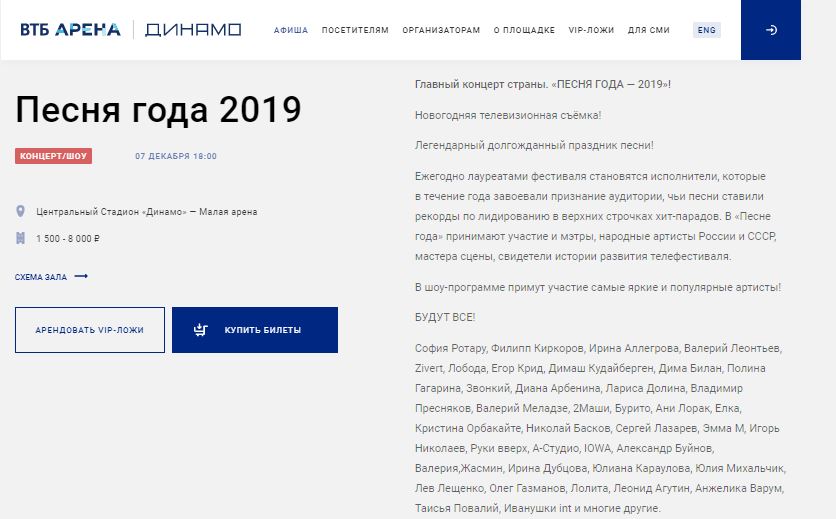 В этом году концерт состоится на "ВТБ Арене" в Москве. Помимо Ротару здесь выступят: Филипп Киркоров, Ирина Аллегрова, Валерий Леонтьев, Светлана Лобода, Ани Лорак, Дима Билан, Валерий Меладзе, который совсем недавно был в Киеве, Олег Газманов, Лолита, Леонид Агутин и многие другие.