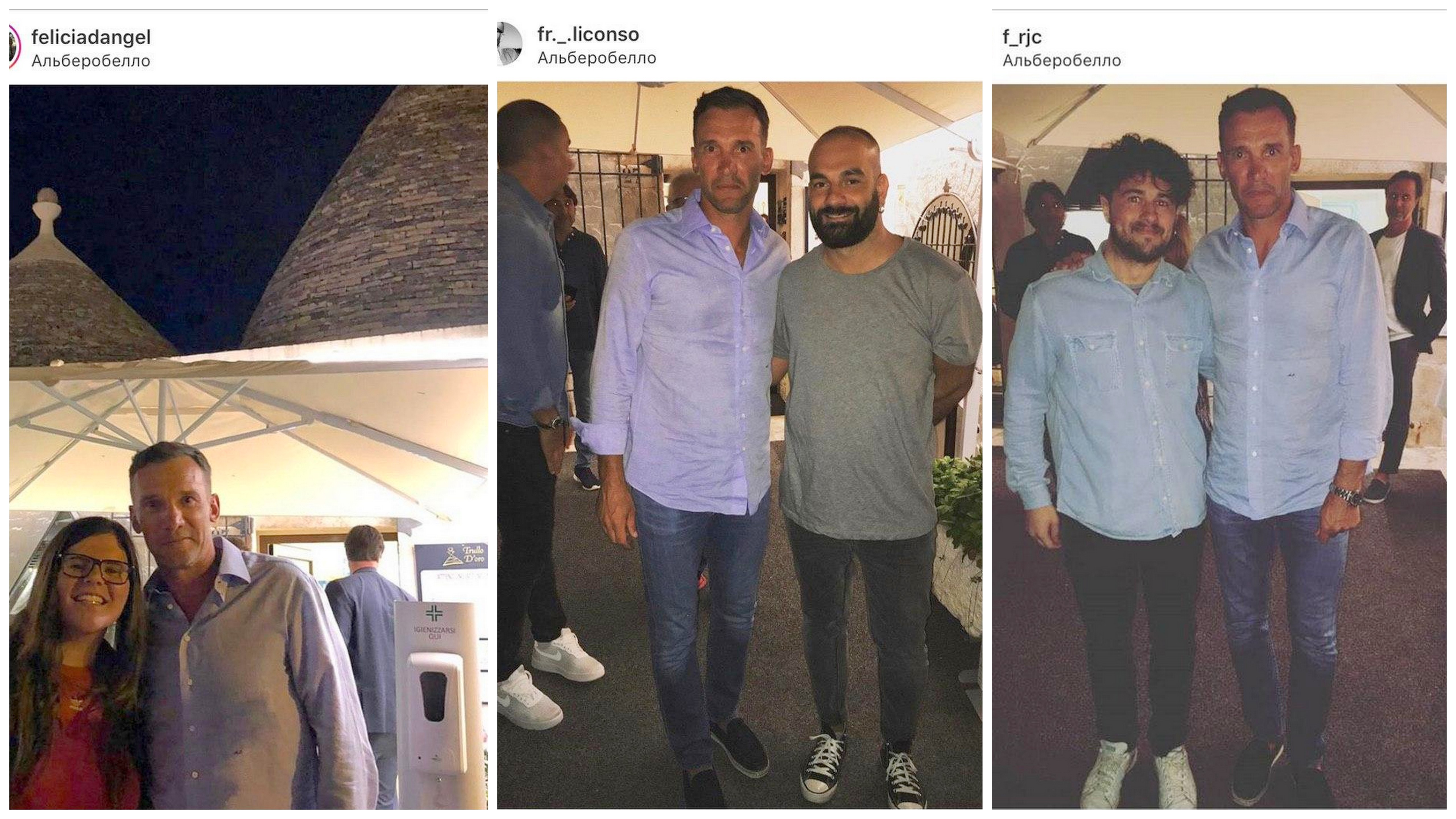Шева с итальянскими фанатами, которые его встретили в ресторане, фото: instagram.com