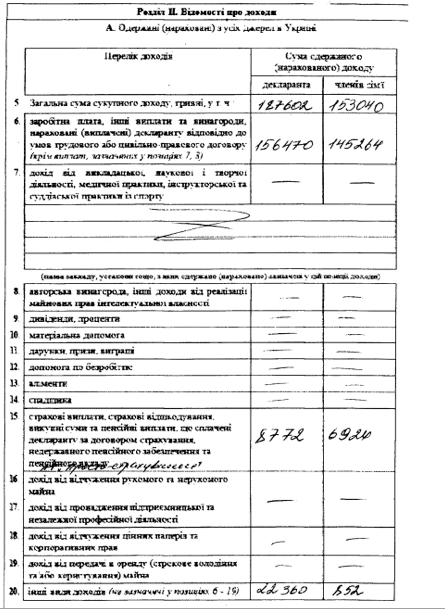 В декларации за 2016 год, которая подавалась уже в электронном виде, Татьяна Малашенкова показала сумму зарплаты в ВСП 238 тысяч, а также социальную помощь 10 тыс грн. Ее муж, работая в клинике "Феофания" и в "Институте сердца", заработал 267 тысяч. Других существенных доходов у семьи не было.
