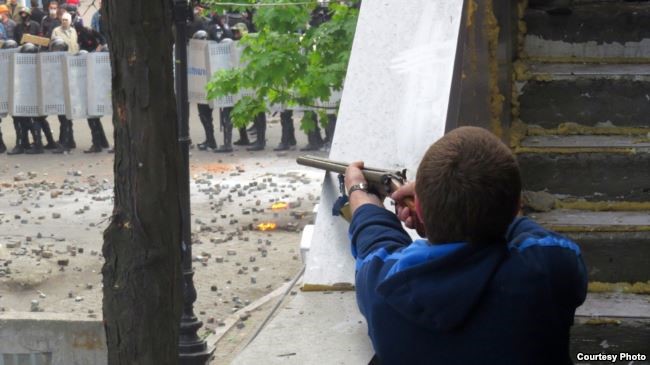 В то время там действительно находились несколько активистов Евромайдана, стрелявших по "куликовцам" из неустановленного оружия. Так, очевидцы говорят о пистолетах.