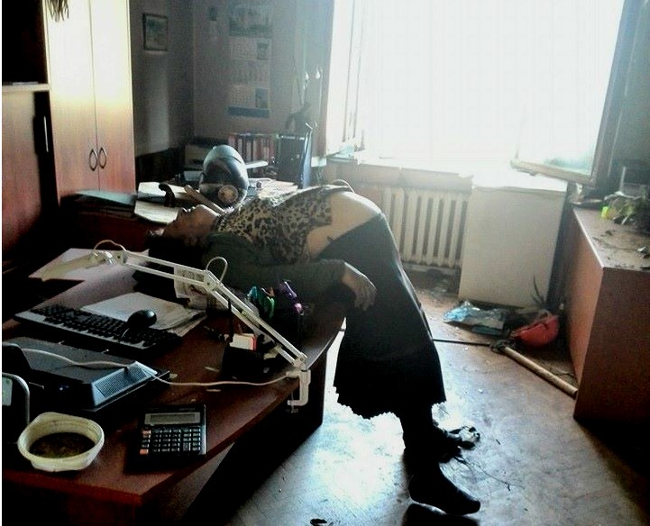 Фотография мёртвой женщины, в странной позе лежащей на столе в одном из кабинетов на втором этаже Дома профсоюзов, облетела как украинские, так и мировые СМИ. Ряд охотников за жареными заголовками приняли полную по телосложению 59-летнюю женщину за беременную. А из-за странной позы было высказано и широко распространилось мнение о том, что её задушили.