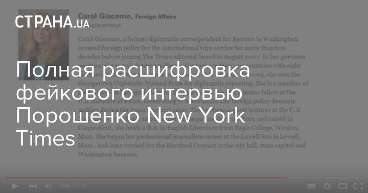 С: Президент Порошенко был очень зол на вашу прошлую статью о коррупции в Украине. Поэтому они (с администрацией Порошенко) решили сделать вброс для Нью-Йорк Таймс, чтобы показать, что ваша газета может размещать фальшивую информацию. Поэтому они заплатили мне деньги, чтобы я это организовал.