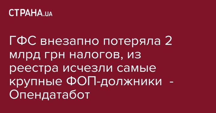 ГФС внезапно потеряла 2 млрд грн налогов, из реестра исчезли самые крупные ФОП-должники - Опендатабот