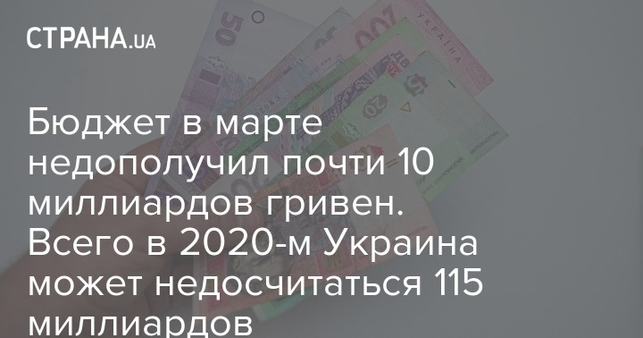 Доходы государственного бюджета в марте 2020 года составили 87,9 миллиарда гривен при плане 98,1 миллиард. Таким образом, уровень невыполнения запланированных показателей по доходам составил 10,4%. Из общей суммы недобор поступлений по налогам и таможне составил 8,8 миллиарда гривен.