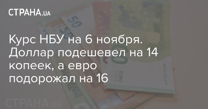 Курс НБУ на 6 ноября. Доллар подешевел на 14 копеек, а евро подорожал на 16