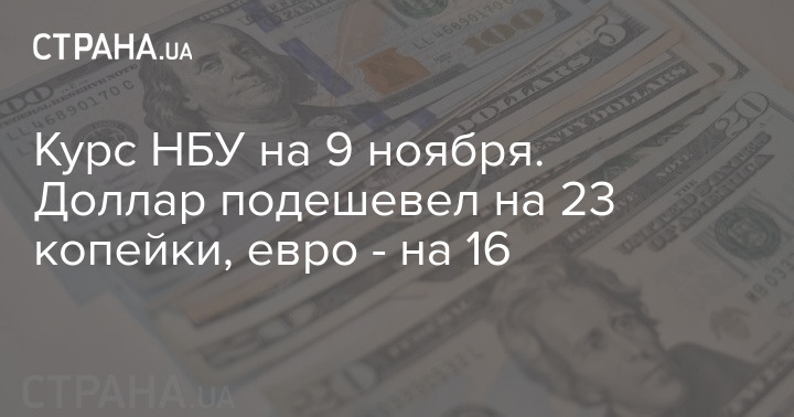Курс НБУ на 9 ноября. Доллар подешевел на 23 копейки, евро - на 16