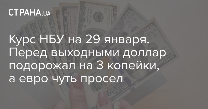 Курс НБУ на 29 января. Перед выходными доллар подорожал на 3 копейки, а евро чуть просел