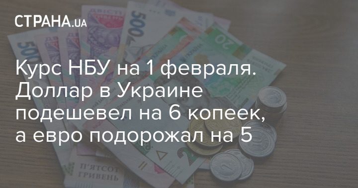 Курс НБУ на 1 февраля. Доллар в Украине подешевел на 6 копеек, а евро подорожал на 5