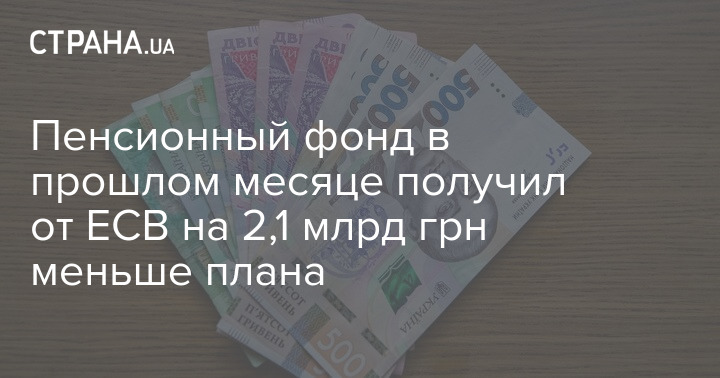 Пенсионный фонд в прошлом месяце получил от ЕСВ на 2,1 млрд грн меньше плана