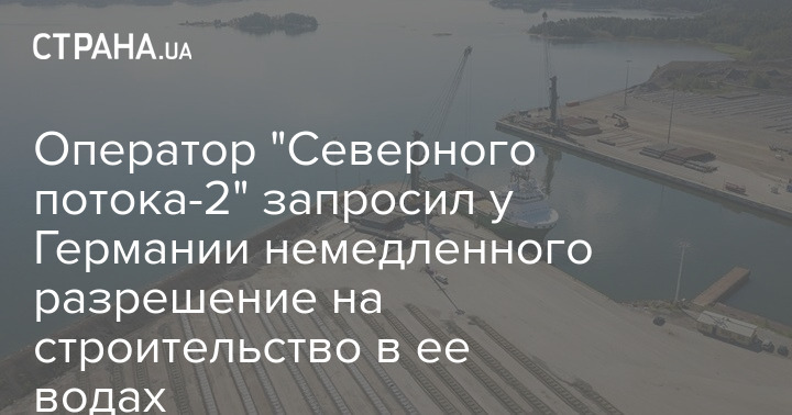 Компания Nord Stream 2 AG, которая является оператором трубопровода "Северный поток-2", подала в Федеральное ведомство по судоходству и гидрографии (BSH) запрос на немедленную выдачу разрешения на строительство газопровода в водах Германии.