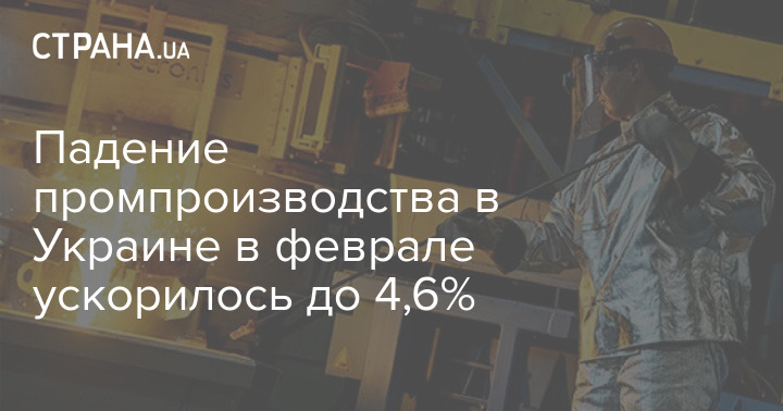 Падение промпроизводства в Украине в феврале ускорилось до 4,6%