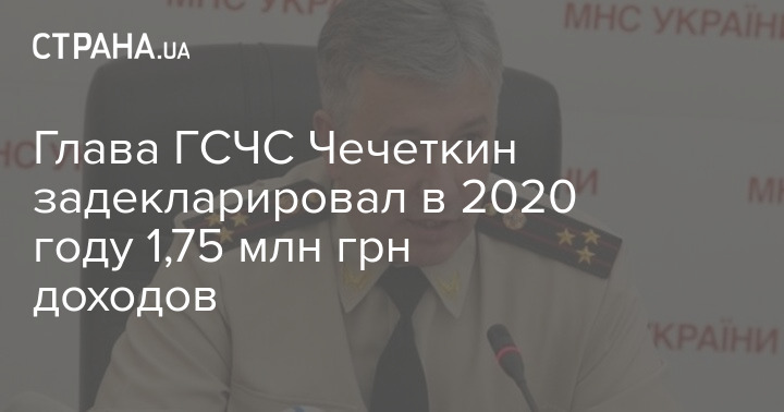 Глава ГСЧС Чечеткин задекларировал в 2020 году 1,75 млн грн доходов