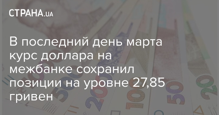 В среду, 31 марта, на межбанковском валютном рынке курс гривни сохранился на уровне 27,855 грн/$1. Котировки нацвалюты на закрытие торгов составили 27,845-27,865 грн/$1. Об этом сообщает агентство "Интерфакс-Украина" со ссылкой на дилеров коммерческих банков.