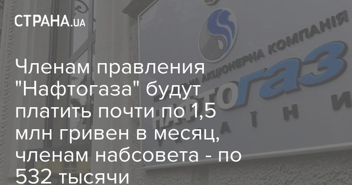 В текущем году члены правления НАК "Нафтогаз Украины" будут получать ежемесячную заработную плату в среднем 1,4 миллиона гривень, а члены наблюдательного совета - 532,98 тыс. гривен.