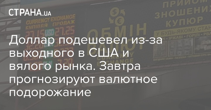 На завтра финансисты дают разные прогнозы. Есть надежда на укрепление до 27,25 грн/$, хотя она осталась не у многих. В основном из-за вечернего слуха о том, что иностранцы завтра или купят у Минфина совсем немного новых ОВГЗ (заводя под них доллар), или не купят ничего.