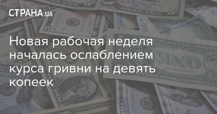 После завершения минувшей рабочей недели на подъеме новую трудовую пятидневку гривня начала скатыванием вниз. На межбанковских валютных торгах ее курс просел на девять копеек. Национальный банк Украины тоже опустил гривню, но всего на пять копеек.