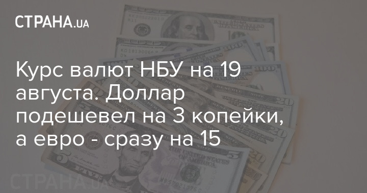 Курс валют НБУ на 19 августа. Доллар подешевел на 3 копейки, а евро - сразу на 15