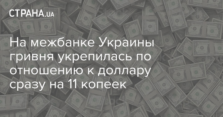 Курс гривни на межбанковском валютных торгах в понедельник укрепился до 26,615 грн за один доллар с 26,725 грн за один доллар в предыдущий рабочий день.
